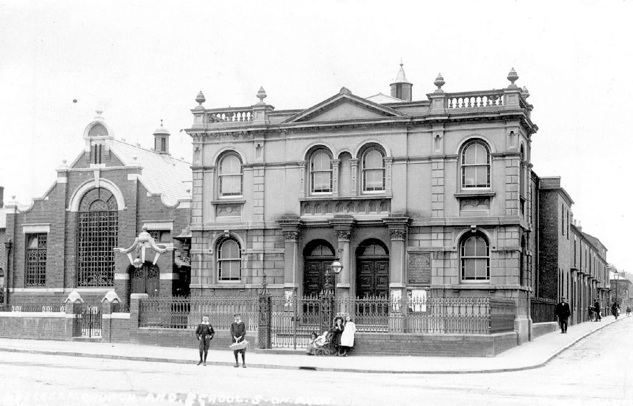 In 1903 the excellent Wesley Hall was built adjoining the chapel, to the left, on the site of the former Minister’s house.