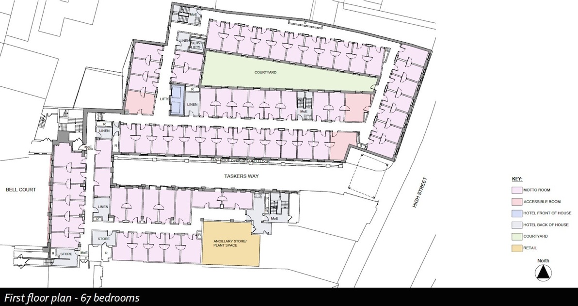Details of plan (download 3.4Mb): ProposedMottoHotel_WasDebenhams.pdf