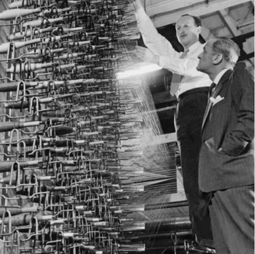In 1946 he purchased the mill at Clifford Chambers and taking out a huge loan he set up new specialist looms. Over the next year he honed his designs and in 1947 submitted one of his first hand woven furnishing designs to the International Wool Secretariat for selection by the young Princess Elizabeth for her forthcoming wedding to Philip. It was chosen as their wedding gift.