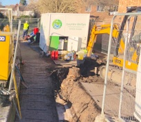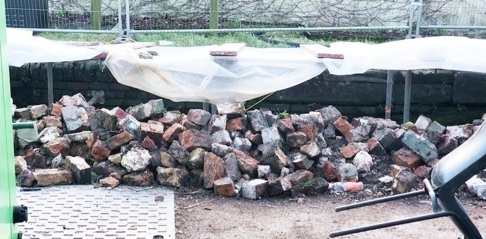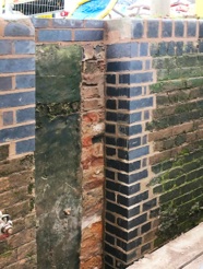 Secondly, a wall between an alley and the towpath had slowly been undermined by a tree causing the whole length to be unstable and masonry fall. Another team came to dig this tree out [4] and then a contract bricklaying team was brought in to build new foundations and install Class A, Engineering Bricks, along the wall’s whole length.