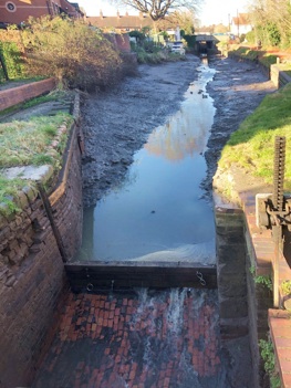 At the start of the full refurbishment works the pounds above and below the lock were drained.