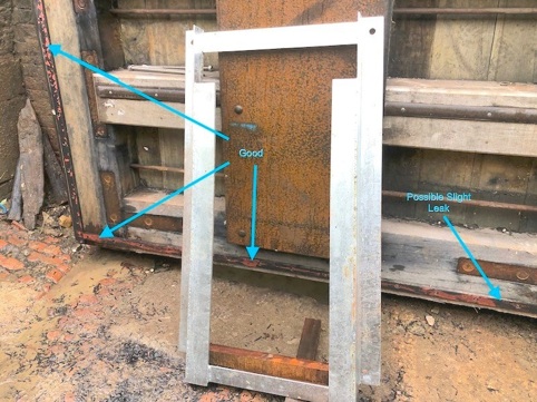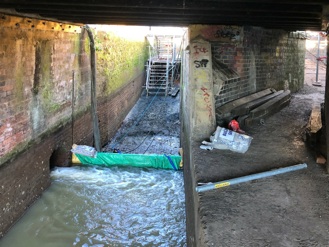 Sure enough, after the main season ended a final survey was done in January 2024. Unfortunately, with the massive amount of extra rainfall during the winter, other significant problems were seen. The worst being that the overflow culvert was beginning to leak badly into the surrounding earth and washing the mortar out from between the lock chamber’s bricks. Quite a few had already been pushed out [1]. If this continued a catastrophic burst through might occur making far more work.