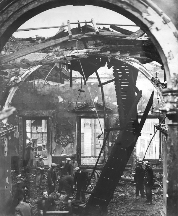 In those days everybody smoked and sadly, one night, an errant cigarette end found its way to a cushion which smoldered and eventually caught the whole sumptuous place alight.