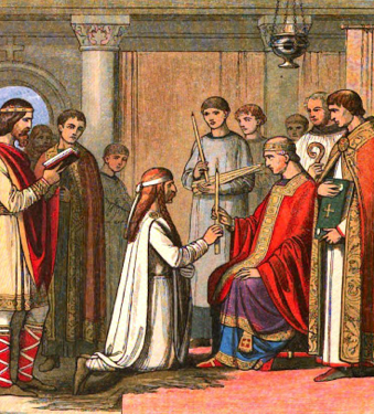 Firstly the Treaty Of Alfred & Guthrum was signed. This defined all the boundaries that the two Kingdoms were going to take. However Alfred was a Christian King and he knew the cruel Viking ways. He insisted that Guthrum start a new life of peace. He asked him to be baptised and keep to his promise. Thus a second document was signed, The Treaty Of Wedmore, and to mark his conversion (as depicted left) Guthrum became Athelstan. He promised to leave and never come back. There were 12 days of celebration and then they departed.