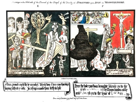 These are the depictions that are thoroughly painted over on the walls of the chancel. We only have Thomas Fisher colourful sketches of 1804 which he published in 1807.