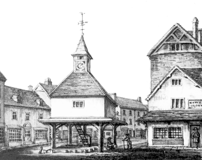 The first Market Cross was blocking High Street and so in 1831 a new location nearby, where Wood Street, Henley Street and Bridge Street met was chosen.
