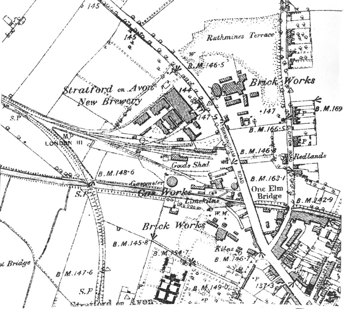 Certainly Stratford had a very successful brickworks. In a town that was rapidly expanding local clay was a boon. The clay was ideal and very red as will be seen from so many of the houses on Clopton Road, Birmingham Road, Guild Street, Arden Street etc. The map (right) gives an exceedingly large amount of information.