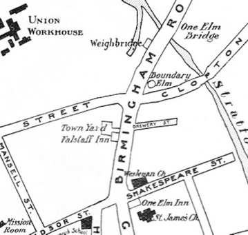 Because several centuries ago a town’s population only increased very slowly the edge of a town was of significance. Obviously in Roman times some were fortified. It is known that by the 19th century a town’s limits were certainly marked, and in Stratford’s case celebrated, by a pub.