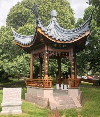 In April 2019 the government of Fuzhou, in China’s southeastern industrial Fujian Province, dedicated this pavilion as a meeting place for peace. An inscription gives information about its origin.